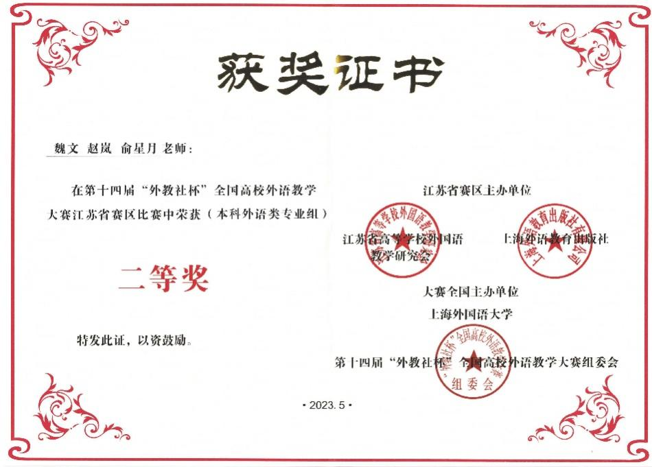 “外教社杯”全国高校外语教学大赛是我国最早举办的全国性外语类教学赛事,覆盖全国千余所高校,在中国高等教育学会发布的《全国普通高校教师教学竞赛分析报》中位列外语类教学大赛首位。