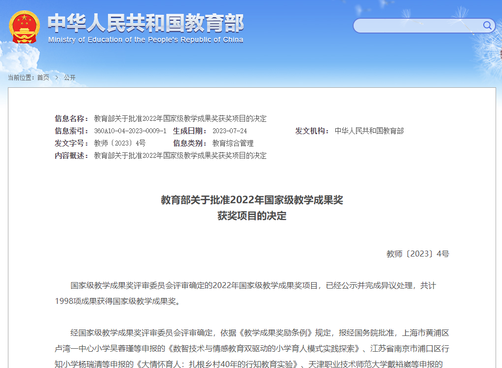 教育部关于批准2022年国家级教学成果奖获奖项目的决定