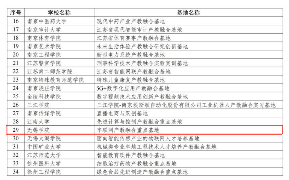 近日,江苏省教育厅发布了《关于公布2023年省级产教融合重点基地建设点遴选结果的通知》(苏教办高函〔2023〕18号),拟立项53个省级产教融合重点基地建设点。我校申报的“车联网产教融合重点基地”成功入选。这是我校继获批1个省级重点产业学院建设点、4个产教融合品牌专业建设点、4门产教融合型一流课程后,在产教融合方面取得的又一重要成果。