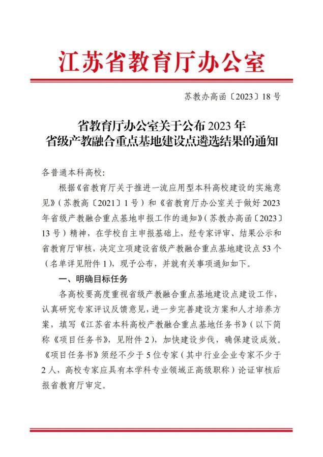 省教育厅关于公布2023年省级产教融合重点基地建设点遴选结果的通知