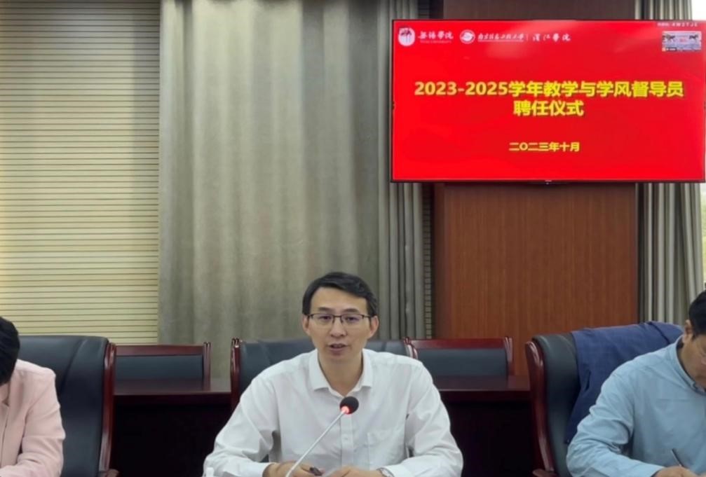 10月10日下午,我校在行政楼327会议室举行2023-2025学年教学与学风督导员聘任仪式及督导培训讲座。副校长曹广喜出席聘任仪式,教学与学风督导组成员、教务处副处长裴晓芳及教务处、教学评估中心相关人员参加聘任仪式。会议由教务处处长钱承山主持。