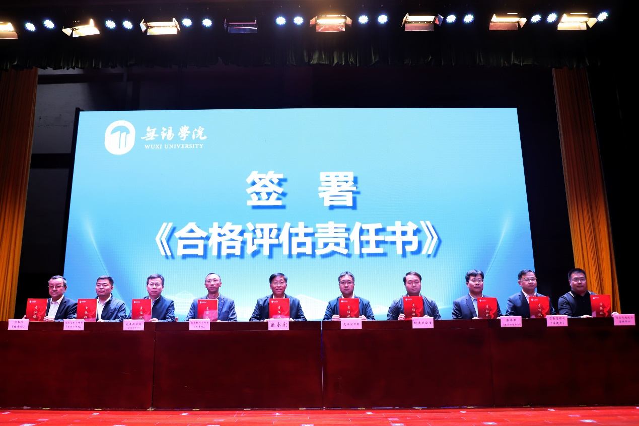 会上,张永宏代表学校与各评建工作小组牵头部门负责人签订合格评估责任状。人事处处长丁留贯、教务处处长钱承山、自动化学院院长李鹏和人文法政学院副院长赵岚分别就各自岗位职责与评建分工,进行表态发言,表达对本科教学工作合格评估的坚定信心与必胜决心。