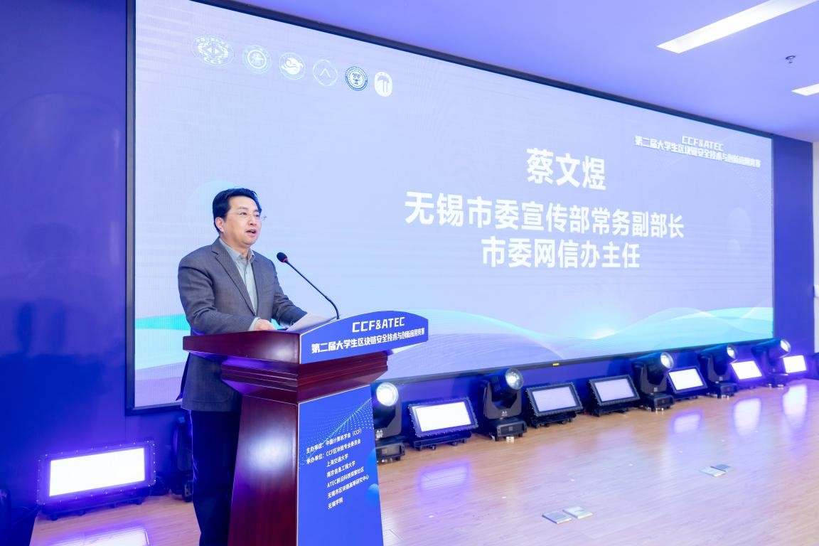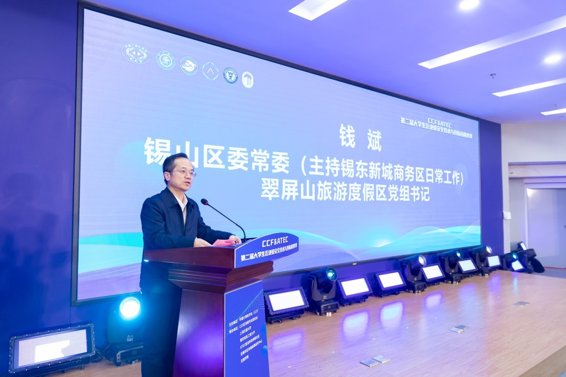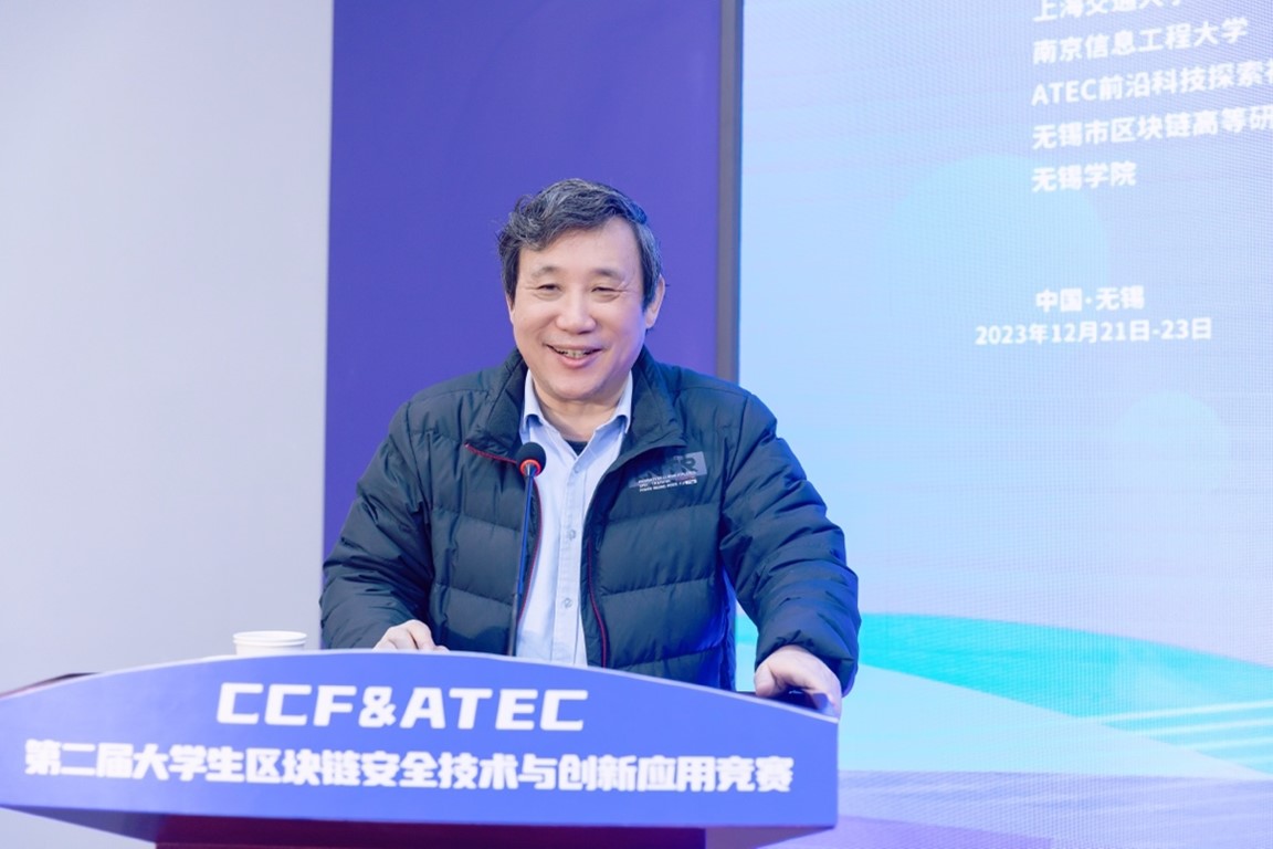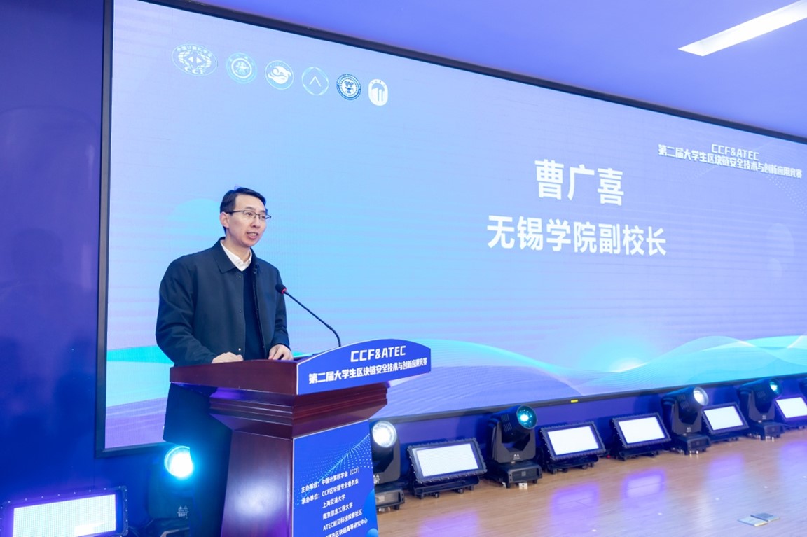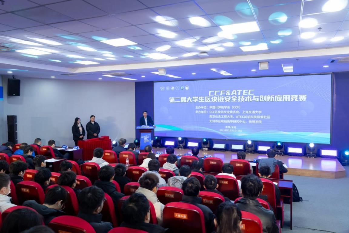 12月22日至23日,由中国计算机学会(CCF)主办,CCF区块链专业委员会、上海交通大学、南京信息工程大学、无锡学院、ATEC前沿科技探索社区与无锡市区块链高等研究中心联合承办的第二届大学生区块链安全技术与创新应用竞赛在我校举办。无锡市委宣传部常务副部长、市委网信办主任蔡文煜、锡山区委常委、翠屏山旅游度假区党组书记钱斌、CCF区块链专委会主任斯雪明、无锡市区块链高等研究中心执行主任骆源参加竞赛开幕式并致辞。无锡学院党委常委、副校长曹广喜受邀出席并致欢迎词。