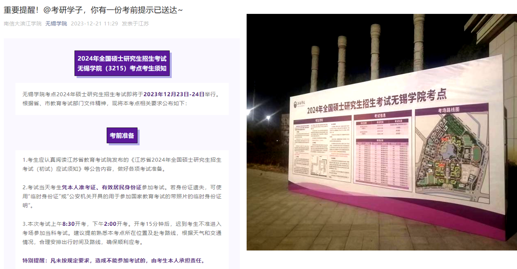 在各相关部门工作人员和师生们的共同努力下,2024年全国硕士研究生招生考试工作各项任务圆满完成。无锡学院祝愿所有考生取得理想成绩,考上心中的学校,实现自己的梦想!
