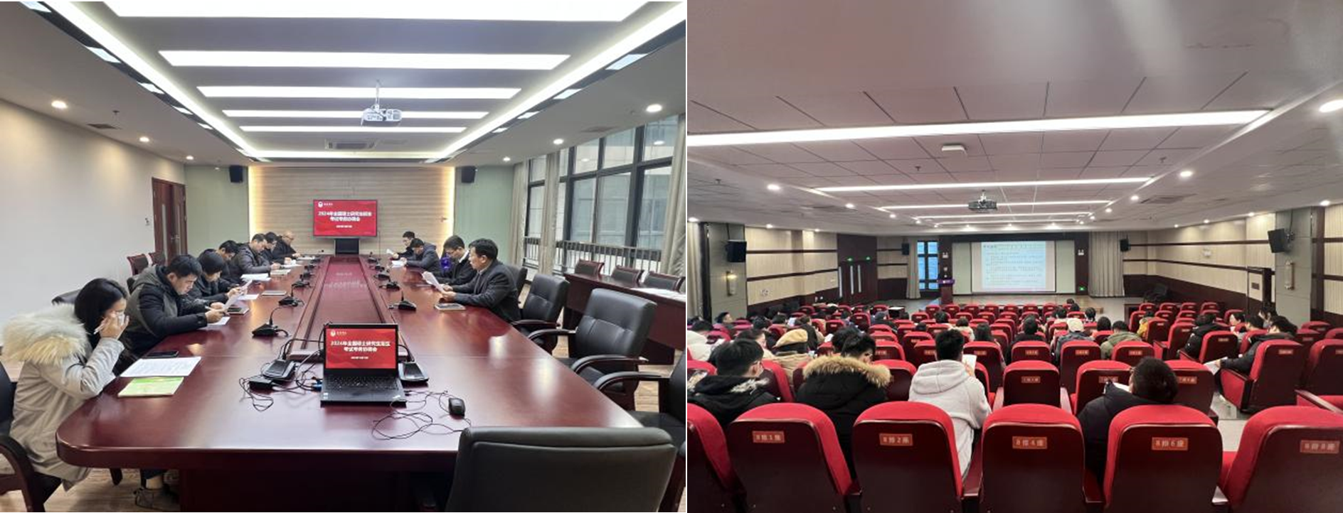 学校认真贯彻落实教育部和省、市教育考试院有关要求,党委常委、副校长曹广喜主持召开2024年全国硕士研究生招生考试考务工作协调会,整体协调,提前布局,责任明确到人;召开考务工作培训会对考试组织和服务人员进行专业培训,围绕手机防控、安全保密、考试实施等方面开展考务培训和模拟演练。