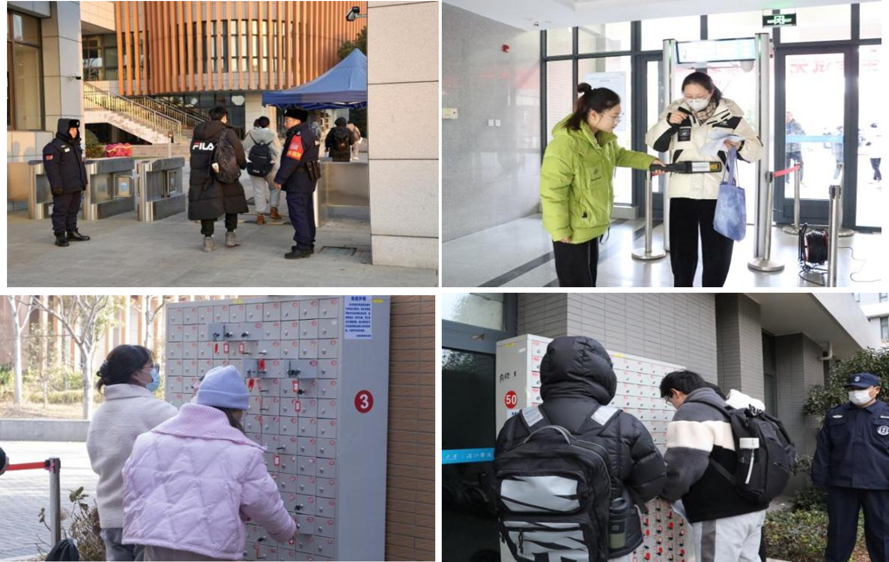 考试期间,我校考点智能安检门、无线电信号屏蔽、手机集中管理全覆盖,各环节从严规范管理,严厉打击考试舞弊,全力以赴保障考试安全,坚决维护研考公平公正。