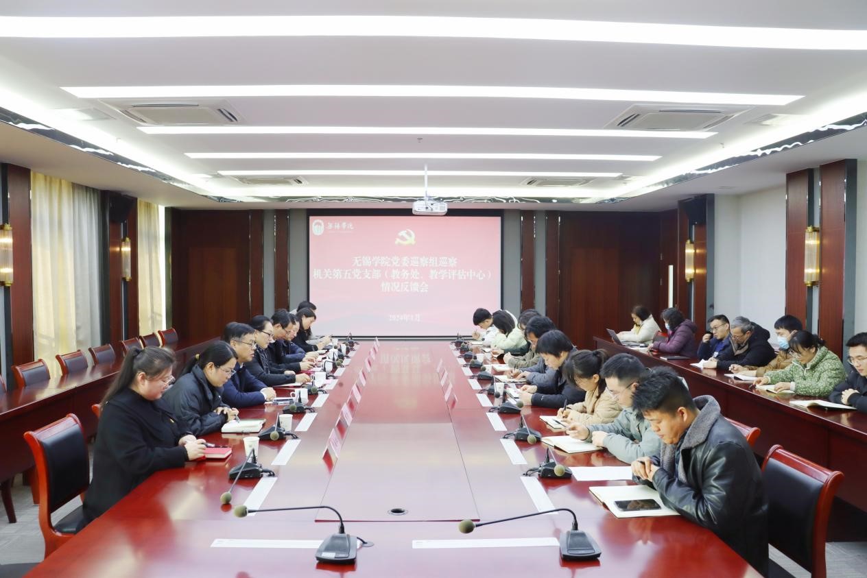 梁惠娥作巡察意见反馈报告。她指出,巡察组经过前期扎实工作,对机关第五党支部(教务处、教学评估中心)进行了一次精准的“政治体检”,实现了学校党委巡察工作的良好开局。全面反馈了在机关第五党支部开展巡察工作的情况,客观评价了机关第五党支部在全面从严治党方面取得的成绩,同时也严肃指出在“四个落实”等方面存在的突出问题,明确提出了整改落实的建议和要求。