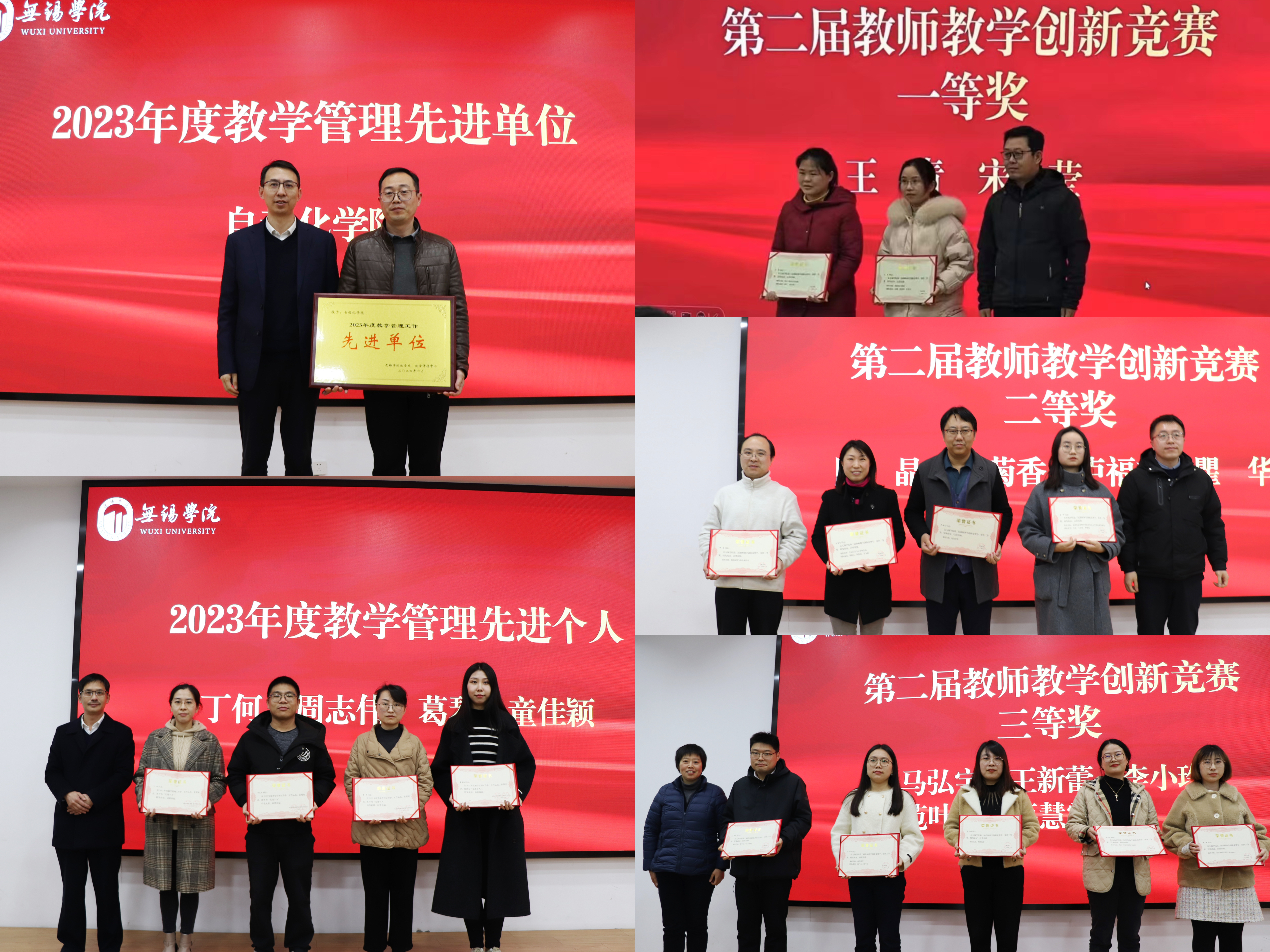 会上,与会领导为2023年获得教学管理先进集体、教学管理先进个人及无锡学院第二届教师教学创新竞赛获奖教师颁发了荣誉证书。宋莹作为教师教学创新竞赛获奖代表,结合参赛经历分享了“让学生成为课堂的主人,促进学生思维能力发展”的宝贵教学经验。