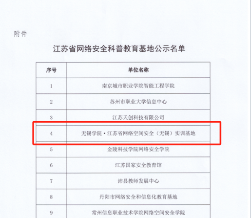 近日,江苏省网络空间安全学会公布《江苏省网络安全科普教育基地》,我校网络空间安全实训基地成功获批江苏省网络安全科普教育基地。