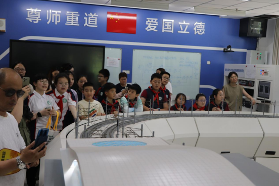 随后,师生家长前往轨道交通科普基地,学院负责老师用生动有趣的语言,通过图片、视频、模型、互动体验等多种形式,向学生们讲述了轨道交通的发展历程、构造原理、以及轨道交通安全设施的运行原理,让小朋友们对轨道交通工具有了更加深入的了解,向小朋友倡导养科学家精神,传承匠心,让梦想在轨道上驰骋。