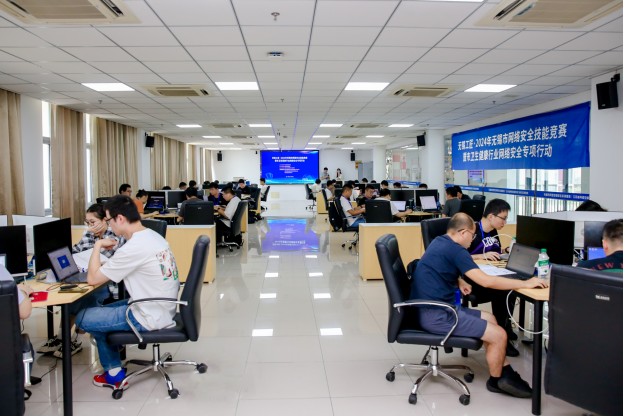 8月16日,由市委网信办主办,市信息化协会承办,无锡学院等单位协办,国家互联网应急中心江苏分中心、无锡移动、江苏省测提供技术支撑的无锡工匠·2024年无锡市网络安全技能竞赛暨市卫生健康行业网络安全专项行动在我校网安基地举办。共有来自49个单位的116名选手参加本次竞赛。市委网信办副主任鲁新龙,市卫健委副主任、党委委员周卉出席启动仪式并观摩比赛。