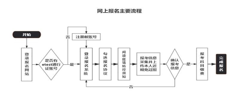 5.网上报名需要ETEST通行证账号,该账号在教育部考试中心所有使用ETEST通行证的报名系统中通用。若考生已有ETEST通行证(四、六级考试报名的账号可以直接用),则直接登录报名;若没有该账号,需要先进行账号注册后再进行报名。对于新注册账号的同学,注册完后需要关闭注册界面,再用注册的账号(账号和密码需要记住,后面打印准考证以及以后的报名均须使用)重新登录报名网站。